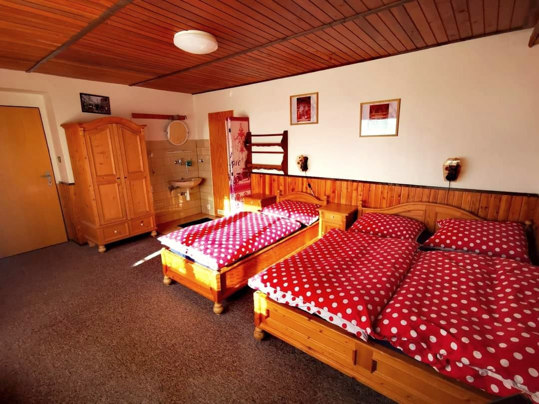- ložnice, manželská postel + dvě samostatná lůžka, sociální zařízení na pokoji.